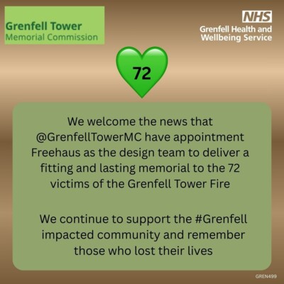 The Grenfell Health and Wellbeing Service welcomes the news that a design team has been selected.